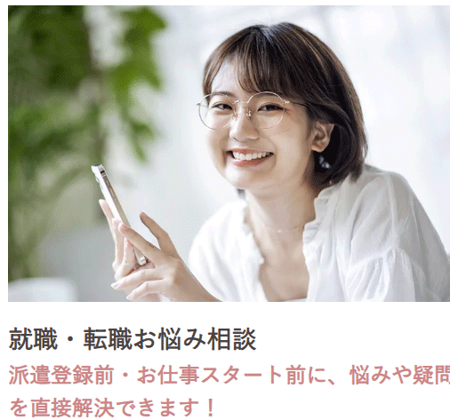 - 就業後も専任コーディネーターがフォローしてくれるので安心です。